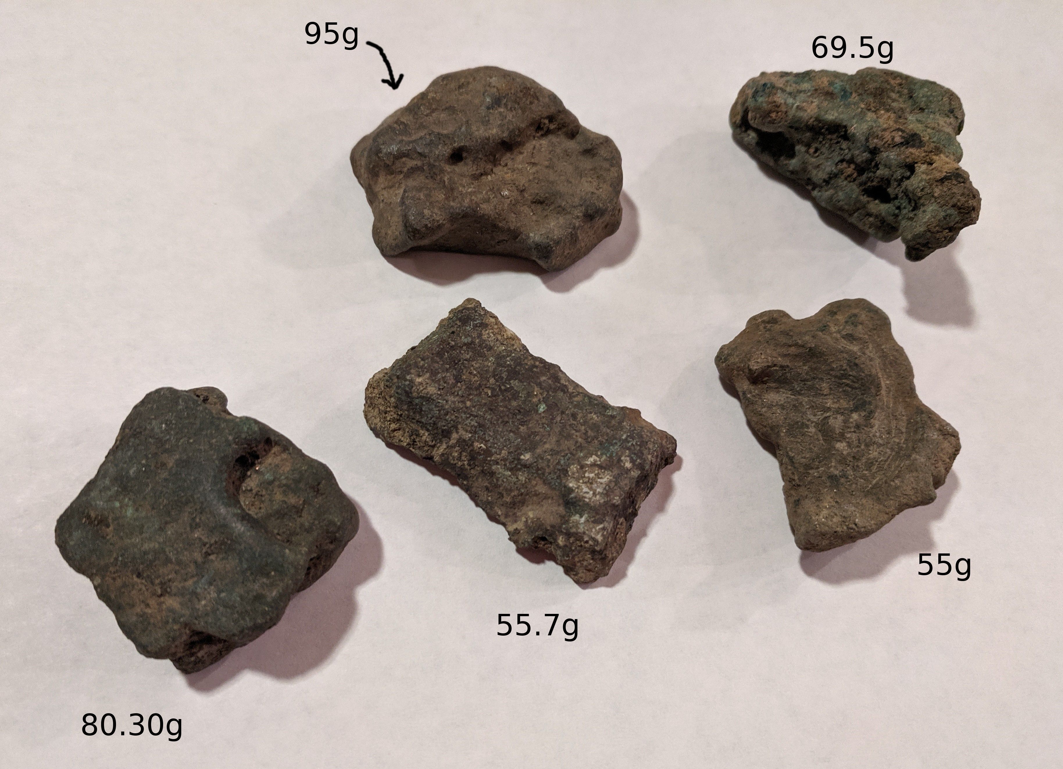Italy, Æ Aes Rude(55.02g, 55.81g, 69.57g, 80.41g, 95.05g), before 4th century B.C.. Irregular cast lump with no stamp or mark of value. Vecchi ICC 1